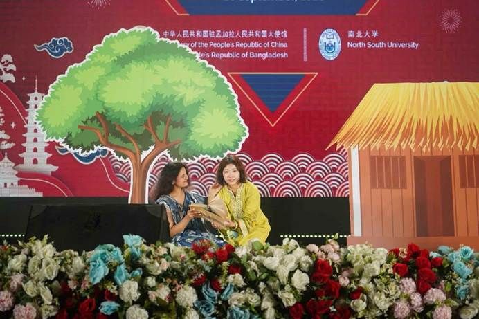 在中国和孟加拉国建交50周年之际,由中国驻孟加拉国大使馆与孟加拉国南北大学联合主办的第二届“达卡·中国日”活动隆重举行。BBIN宝盈游戏官网孟加拉语专业研究生于孟加拉国当地时间9月25日受邀参加本次活动。“达卡·中国日”旨在展示中国与孟加拉国合作取得的成就以及各领域双边交流的亮点。中国驻孟加拉国大使姚文、孟渔业和畜牧业顾问法里达、南北大学校长汉南以及高校师生2万余人出席活动。